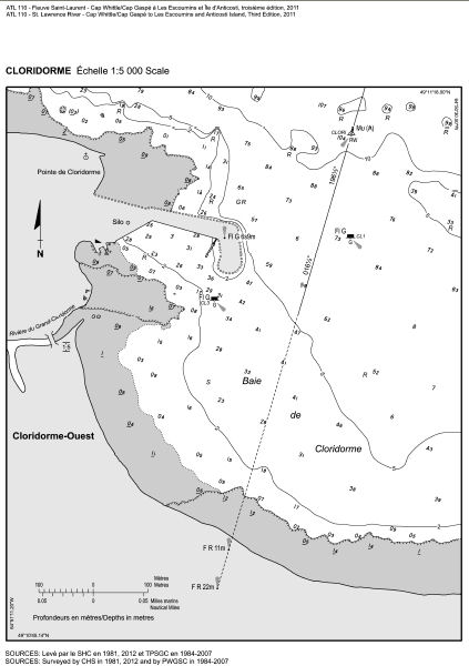 Service hydrographique du Canada – Information publiée dans la Partie 2 des Avis aux navigateurs. Les navigateurs sont avisés que seuls les changements les plus importants ayant une incidence directe sur la sécurité à la navigation sont publiés dans la Partie 2 – Corrections aux cartes. Cette limite est nécessaire pour veiller à ce que les cartes demeurent claires et faciles à lire. De ce fait, les navigateurs peuvent observer de légères différences de nature non essentielle en ce qui a trait aux renseignements qui se trouvent dans les publications officielles. Par exemple, une petite modification de la portée nominale ou de la hauteur d'un feu peut ne pas avoir fait l'objet d'une correction cartographique dans les Avis aux navigateurs, mais peut avoir été apportée dans le Livre des feux, des bouées et des signaux de brume. |