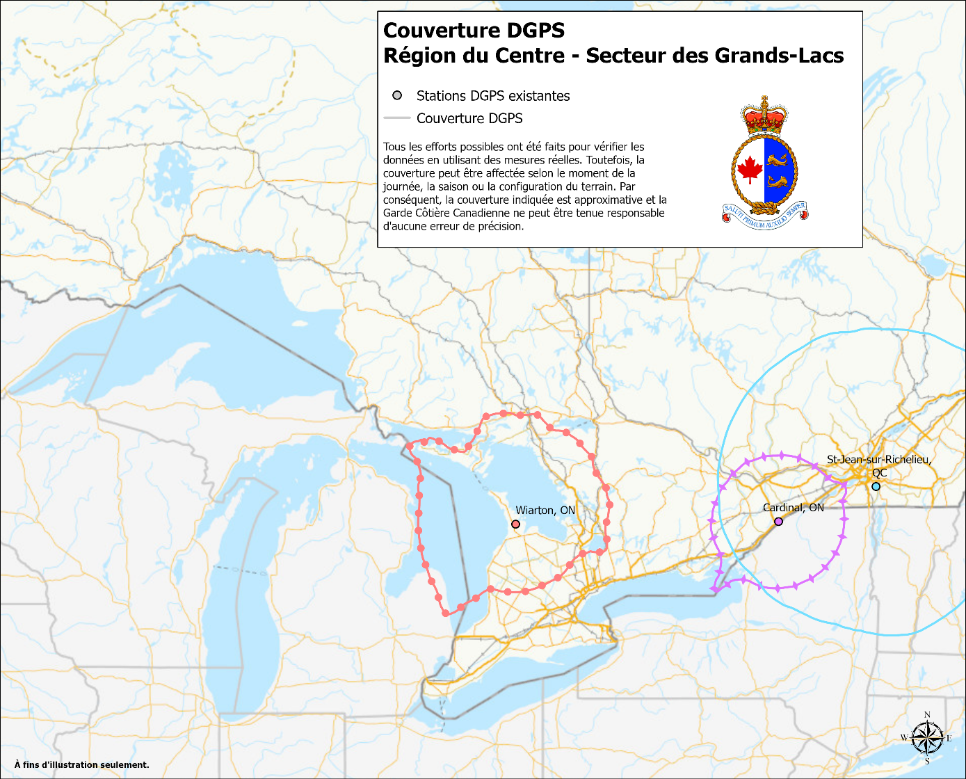 Figure 4-9 - Couverture DGPS - Région du Centre et de l’Arctique – Secteur des Grands-Lacs
