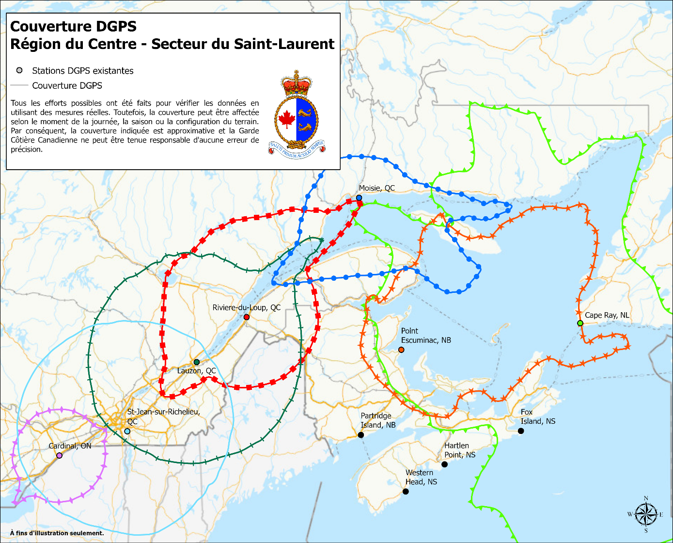 Figure 4-8 - Couverture DGPS - Région du Centre – Secteur du Saint-Laurent